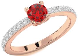 Diamond Ruby Rose Gold Round Solitaire Pave Engagement Ring