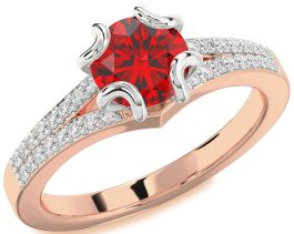 Diamond Ruby White Rose Gold Round Solitaire Pave Engagement Ring