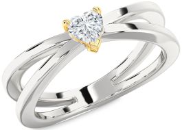 This elegant Promise ring features a heart-shaped diamond held by three polished prongs, radiating delicate sparkle. The band showcases a split-shank design, where two sleek strands of high-polish yellow gold cross and merge, forming a modern silhouette. This refined structure highlights the center stone while adding contemporary flair, making the ring both romantic and stylish.