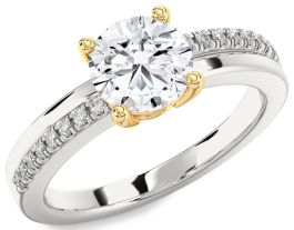 Diamond Silver & 10K gold Round Solitaire Engagement Ring