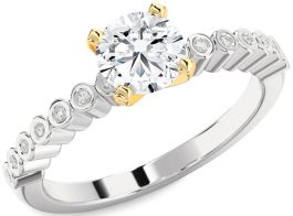 Diamond Silver & 10K gold Round Solitaire Engagement Ring