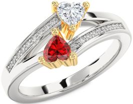Diamond Silver & 10K gold Two Heart Promise Ring