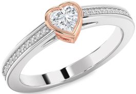Diamond Silver & 10K Rose Gold Heart Pave Promise Ring