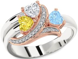 Diamond Silver & 10K Rose Gold Heart Three Stone Mother's Ring