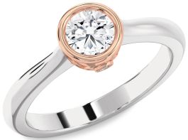 Diamond Silver & 10K Rose Gold Round Solitaire Engagement Ring