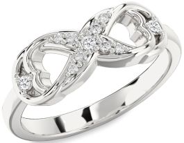 A radiant celebration of everlasting love, this ring features two open hearts delicately entwined within an infinity-inspired design. Sparkling accents sweep across the center, forming a graceful crossover that symbolizes unbreakable bonds and timeless devotion. Elegant yet heartfelt, it’s a perfect token of enduring connection and romantic promise.