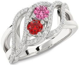 Diamond Silver Knot Round Two Stone Promise Ring