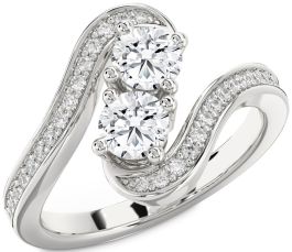 Diamond Silver Round Two Stone Pave Ring