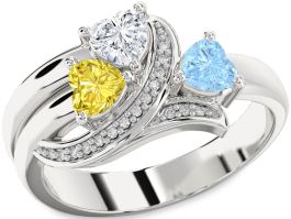 This Mother's ring beautifully captures the essence of family love with its trio of heart-shaped stones, each symbolizing a cherished bond. The graceful curves and glittering accents flow in perfect harmony, representing the nurturing embrace only a mother can give. A radiant tribute to motherhood, this design blends elegance, meaning, and timeless sentiment.