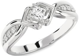 This elegant gold Promise ring features a striking princess-cut diamond at its heart, cradled within an open-frame heart motif that adds a romantic and modern touch. The gracefully twisting band is adorned with a row of sparkling round-cut accent stones on each shoulder, enhancing its radiance. Sophisticated yet playful, it’s a perfect symbol of love and individuality.