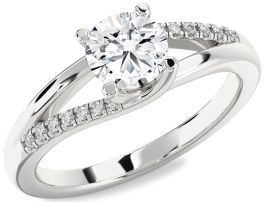 Distinct and graceful, this Engagement Ring showcases a brilliant center cradled between two asymmetric prongs that curve upward in a modern silhouette. One side of the band is adorned with a delicate trail of shimmering accents, adding a unique contrast and elegance. A perfect blend of artistry and balance, this design symbolizes a love that’s both unconventional and beautifully connected.