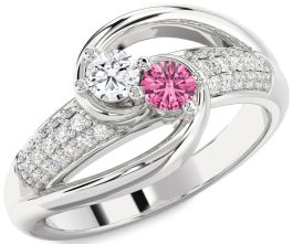 This promise ring showcases a graceful bypass design in radiant yellow gold, symbolizing two lives crossing paths. At the heart, round-cut blue and pink stones sparkle in harmony, representing a unique bond. Accented with pavé-set diamonds on each shoulder, this elegant piece captures both sentiment and sophistication—making it the perfect expression of lasting devotion.