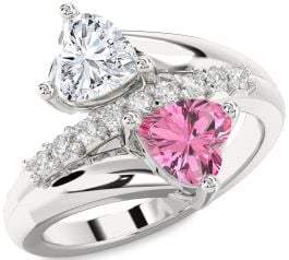 This elegant bypass Promise Ring features two stunning heart-shaped gemstones—one a radiant icy blue and the other a brilliant white—set gracefully in a polished yellow gold band. A shimmering row of round-cut accent diamonds curves between them, adding captivating sparkle. Symbolizing unity and eternal love, this ring is a perfect expression of heartfelt connection and timeless elegance.