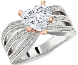 Diamond White Rose Gold Heart Solitaire Pave Engagement Ring