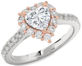 Diamond White Rose Gold Heart Halo Pave Engagement Ring