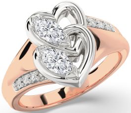 Diamond White Rose Gold Heart Two Stone Ring