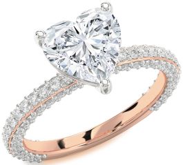 Diamond White Rose Gold Heart Solitaire Pave Engagement Ring