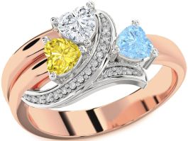 Diamond White Rose Gold Heart Three Stone Mother's Ring