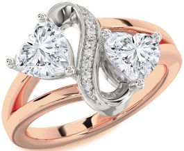 Celebrate a powerful bond with this beautifully sculpted Promise Ring featuring two radiant heart-shaped stones—one sparkling clear and one rich purple—cradled in an artistic wave of gold. A row of pavé-set diamonds curves between them, symbolizing the path that brings two hearts together. Elegant, expressive, and timeless, this ring speaks of love, unity, and shared journeys.