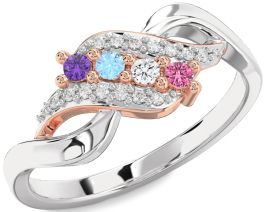 This graceful Mother’s ring features four brilliant stones, each symbolizing a cherished child, set between sparkling ribbons that flow like an embrace. The intertwining design reflects a mother’s infinite care, capturing the unique place each child holds in her heart. A timeless tribute to the strength, beauty, and harmony found in motherhood’s unbreakable bond.