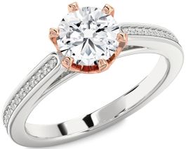 Diamond White Rose Gold Round Solitaire Pave Engagement Ring