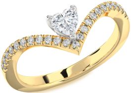 This elegant promise ring features a heart-shaped center stone that sits gracefully at the tip of a sweeping chevron band. Lined with a shimmering row of brilliant accent stones, the band curves into a soft V, creating a romantic frame around the centerpiece. A symbol of love and fidelity, this design combines classic elegance with meaningful style.