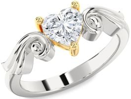 This elegant engagement ring captures a timeless charm with its heart-shaped center embraced by sculpted, scroll-like flourishes. The flowing details on either side create a vintage-inspired silhouette that feels both classic and romantic. A perfect expression of enduring love and graceful beauty, this piece evokes a fairytale spirit with every glance.