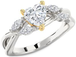 Diamond White Yellow Gold Heart Engagement Ring