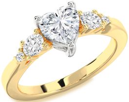Diamond White Yellow Gold Heart Three Stone Engagement Ring