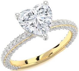 Diamond White Yellow Gold Heart Solitaire Pave Engagement Ring