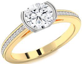 Diamond White Yellow Gold Round Solitaire Pave Engagement Ring