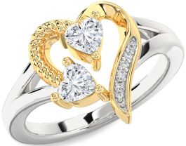 A captivating expression of affection, this double-heart Promise ring intertwines timeless design and intricate craftsmanship. Two heart-cut stones nestle within a stylized heart, framed by a polished rope-textured arc and a cascade of pavé-set accents. With a graceful bypass shank enhancing its flow, this ring is a radiant celebration of enduring love and elegant individuality.