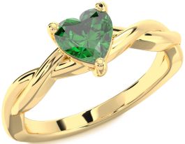 Emerald Gold Heart Knot Solitaire Engagement Ring