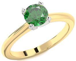 Emerald Gold Silver Round Solitaire Engagement Ring