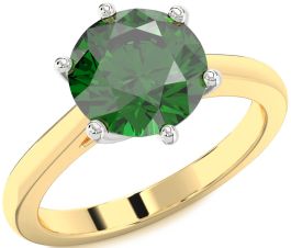 Emerald Gold Silver Round Solitaire Engagement Ring