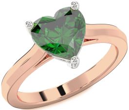 Emerald Rose Gold Silver Heart Solitaire Engagement Ring