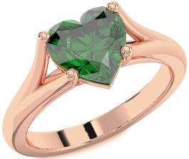 Emerald Rose Gold Silver Heart Solitaire Engagement Ring