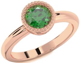 Emerald Rose Gold Silver Round Vintage Engagement Ring
