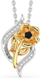 Black Diamond & Citrine Silver & 10K gold Flower Necklace