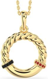 Black Diamond & Ruby Gold Silver Circle Knot Necklace