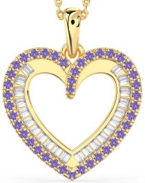 This pendant features a radiant heart design, where alternating rows of brilliant round and sleek baguette stones create a striking double halo effect. The contrast of shapes enhances its dimensional appeal, while the warm gleam of the metal anchors the piece in timeless charm. Elegant and expressive, itâs a statement of love crafted with modern sophistication and intricate detail.