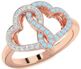 Diamond & Aquamarine Rose Gold Silver Heart Infinity Promise Ring