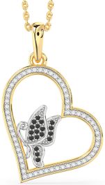 Diamond & Black Onyx White Yellow Gold Heart Butterfly Necklace