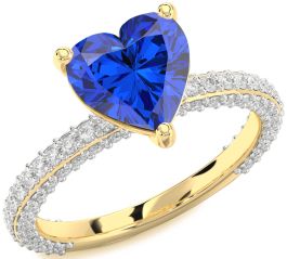 Diamond Blue Sapphire Gold Heart Solitaire Pave Engagement Ring