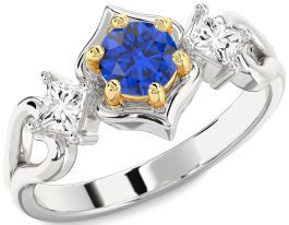 Diamond Blue Sapphire Gold Silver Round Three Stone Engagement Ring