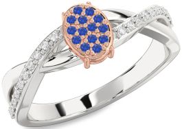 Diamond Blue Sapphire Platinum & Rose Gold Knot Round Promise Ring