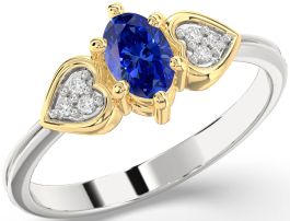 Diamond Blue Sapphire Platinum & Yellow Gold Heart Engagement Ring