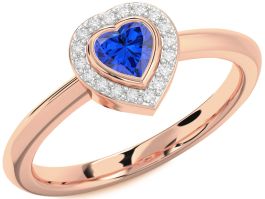 Diamond Blue Sapphire Rose Gold Silver Heart Promise Ring
