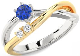 Diamond Blue Sapphire Silver & 10K gold Round Promise Ring