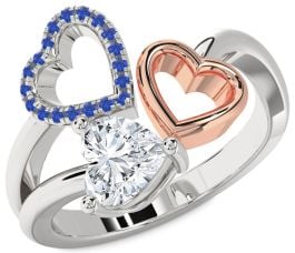 This elegant promise ring features a stunning heart-shaped center stone framed by two graceful open-heart accents—one adorned with sparkling pavé-set stones, the other polished to perfection. Together, they symbolize unity and eternal love. The graceful design and meaningful arrangement make this piece a heartfelt expression of your lasting commitment.
